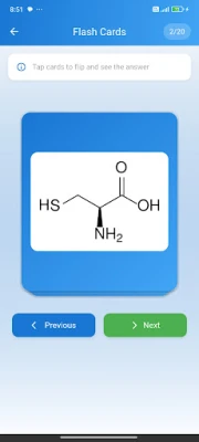 Interactive Flashcards: Study amino acids with customisable flashcards, featuring names, symbols, or skeletal formulas. Flip to reveal details and reinforce your memory!