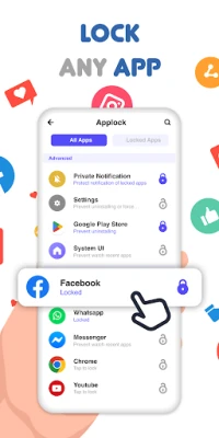 App Lock can lock Facebook, WhatsApp, Gallery, Messenger, Snapchat, Instagram, SMS, Contacts, Gmail, Settings, incoming calls and any app you choose . Prevent unauthorized access and guard privacy. Ensure security.