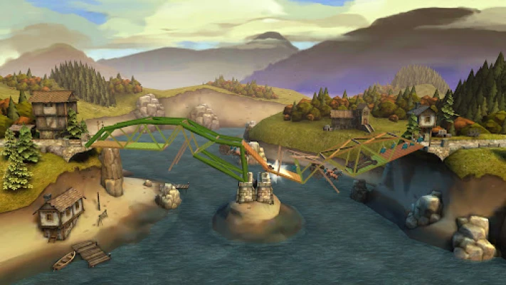 Bridge Constructor Medieval turns back the clock a few centuries to the time of knights and castles. Build sturdy bridges to supply your city with provisions - or cunningly constructed bridges that collapse under the weight of attacking troops, sending the horde of enemies into the abyss below. You won’t even be safe from cannon fire in the 40 brand new levels. Protect your foot soldiers and your horse-drawn carriages with covered bridges and stable pillar structures.