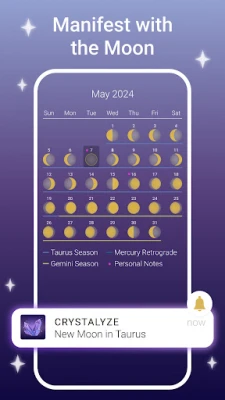 - Align your spiritual healing practice with the lunar rhythms / moon phases and astrology using the Moon Calendar and Daily Journal.