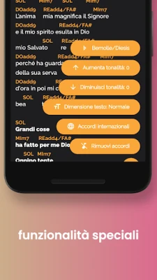 È possibile visualizzare le canzoni con o senza accordi e gli accordi con varie nomenclature.