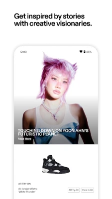 Discover stories featuring creative visionaries such as Yoon Ahn, Peso Pluma and Tyshawn Jones. Try before you buy and experience sneakers on feet in augmented reality.