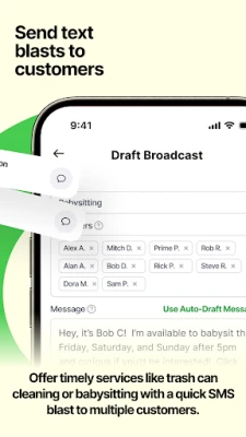 Reach all your customers instantly when you’re available for work—no group text chaos, just one polished message from your CRM to multiple customers.