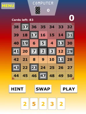 The game-play is based on the decomposition of numbers into their prime factors. This means that the deck is mostly 2's and 3's, some 5's and 7's, and occasional 11's, 13's, 17's, 19's etc...