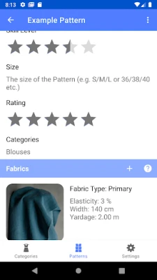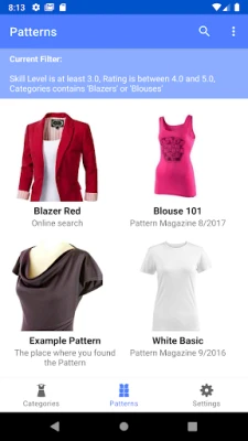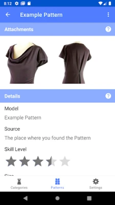 The app lets you gain the perfect overview in a single place, whether your patterns are purchased, found in magazines, or your own creations entirely. You can categorize your patterns based from standard garment types, or create as many of your own categories as you like. You can have your patterns sorted alphabetically, by most recent usage, or in any particular order you like. Each pattern can be associated with as many categories as you wish.