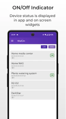 Discover the ultimate Wake on LAN (WoL) solution with WolOn, designed to optimize your Wake on LAN experience. Effortlessly wake your computer, NAS, Media server or any WOL-enabled device from withing your home network (over LAN), or from the Internet (over WAN).
